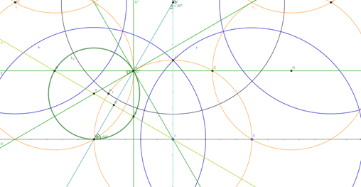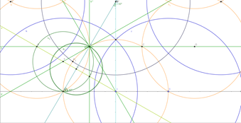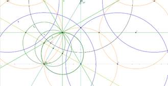- Replicating the newly formed circles is simple by reflecting required centres in an axis (blue) as shown above and copying their radii. These new circles share an intersection at W as shown.