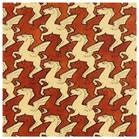 Tiling was of particular interest to Escher and above one can observe planar 2 dimensional tiling done by him. A plane can be tiled through the repetition of a base shape or permutation of a handful shapes that can be detailed artistically to appear more interesting and relatable. But this is trivial to visually digest as equal sizes appear equal in such planar setting.