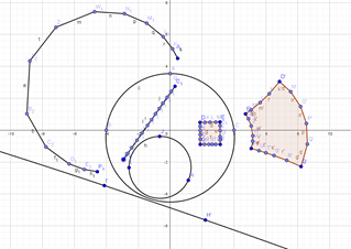 - Construct a circle with centre D and radius DP1; this shall be the main disc that would be tiled and is orthogonal to the initial circle (orange). Triangle DHJ is a hyperbolic triangle with angles 30, 45, 90 degrees.