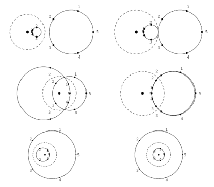 Note that the centres of these hyperbolic circles are NOT at their geometric centres (their centre would be at the inversion of the outside circle’s centre which would not coincide with the hyperbolic circle’s geometric centre) and one could term them as hyperbolic centre, if that helps by design. The last case can be seen where the hyperbolic circle’s hyperbolic centre coincides with its geometric centre.